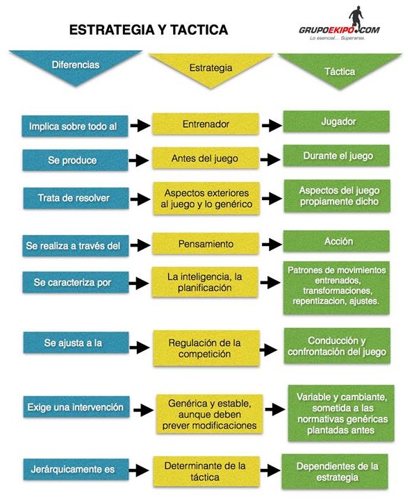 La principal diferencia entre la táctica y la estrategia militar es el tiempo que se necesita para alcanzar los objetivos. Las tácticas se refieren a los recursos que se usan para alcanzar un objetivo inmediato. Estas tácticas se pueden cambiar rápidamente según las circunstancias. Por otro lado, las estrategias militares se refieren a los planes a largo plazo para alcanzar los objetivos. Estas estrategias se basan en análisis previos y se usan para asegurar que los objetivos se logren a través de varios movimientos.